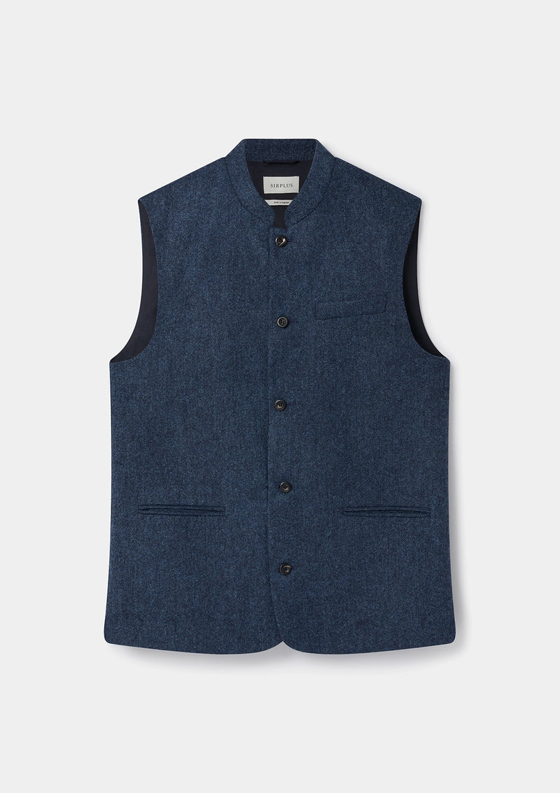 Slate Blue Tweed Nehru Waistcoat
